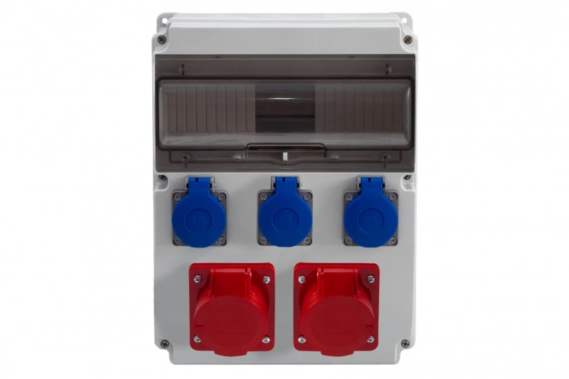 Rozdzielnica CAJA 12M - gniazda 2x16A 5p, 3x230V o numerze katalogowym   F3.0453 w kategorii Osprzęt przemysłowy-siłowy>Zestawy zasilające. Produkt wyprodukowany przez markę F-ELEKTRO.