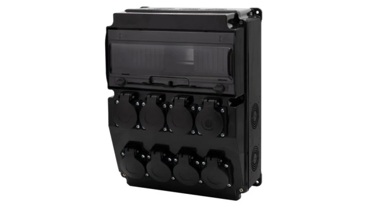Rozdzielnica CAJA 12M SCENIC - gniazda 8x230V o numerze katalogowym   F3.2692 w kategorii Osprzęt przemysłowy-siłowy>Zestawy zasilające. Produkt wyprodukowany przez markę F-ELEKTRO.