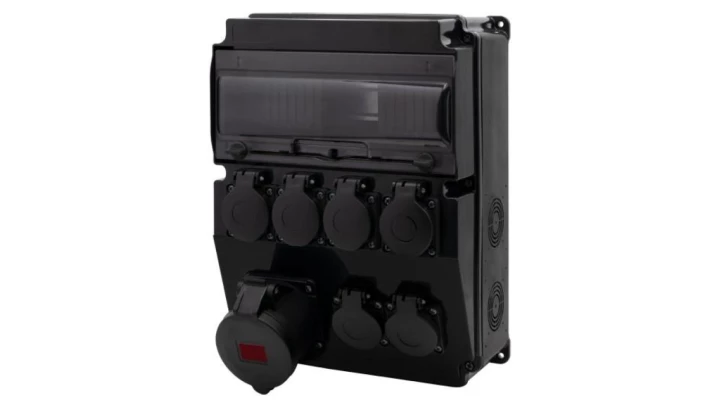 Rozdzielnica CAJA 12M SCENIC - gniazda proste 16A 5p, 6x230V o numerze katalogowym   F3.2689 w kategorii Osprzęt przemysłowy-siłowy>Zestawy zasilające. Produkt wyprodukowany przez markę F-ELEKTRO.