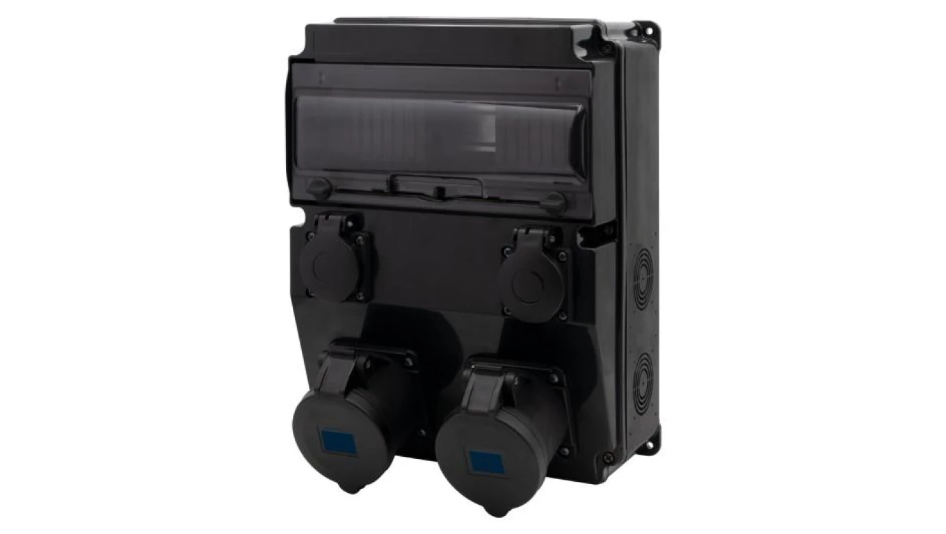 Rozdzielnica czarna CAJA 12M SCENIC - gniazda proste 16A 3p, 32A 3p, 2x230V /12 modułów/