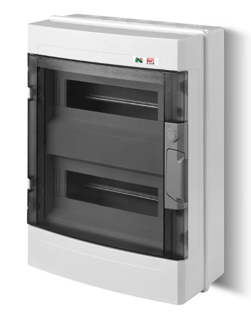 Rozdzielnica natynkowa EP-LUX + 2x12 modułów PV 1500V DC 1000V AC IP65 z szyną nośną TH-35 i listwą zaciskową o numerze katalogowym 1956-01 w kategorii Tworzywowe natynkowe, Rozdzielnice i obudowy. Produkt wyprodukowany przez markę ELEKTRO-PLAST NASIELSK, seria EP-LUX.