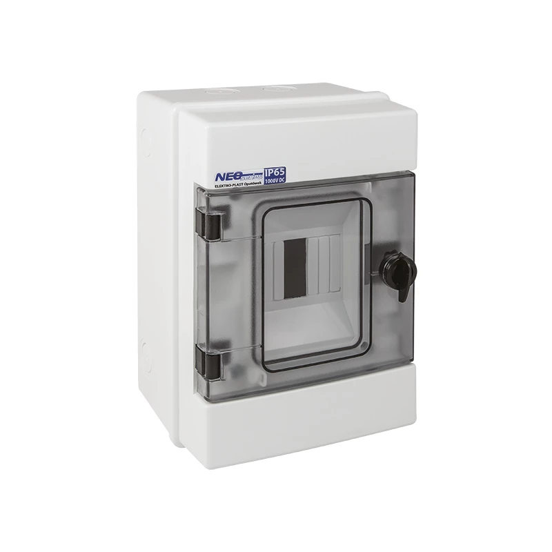 ECH-4G ROZDZIELNIA PLASTIKOWA NT 4M 1X 4M N+PE IP65 IK07 201X128X120 DRZWI DYMNE SZARY DIDO 1500V/DC