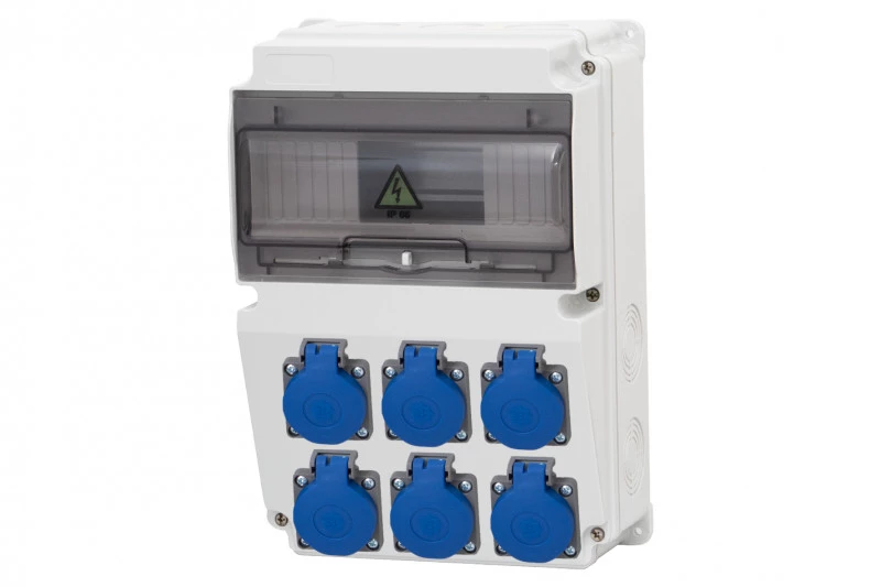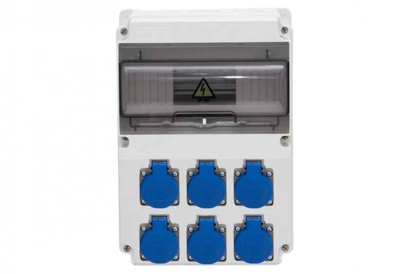 Rozdzielnica LAGO 10M - gniazda 6x230V o numerze katalogowym   F3.0865 w kategorii Osprzęt przemysłowy-siłowy>Zestawy zasilające. Produkt wyprodukowany przez markę F-ELEKTRO.