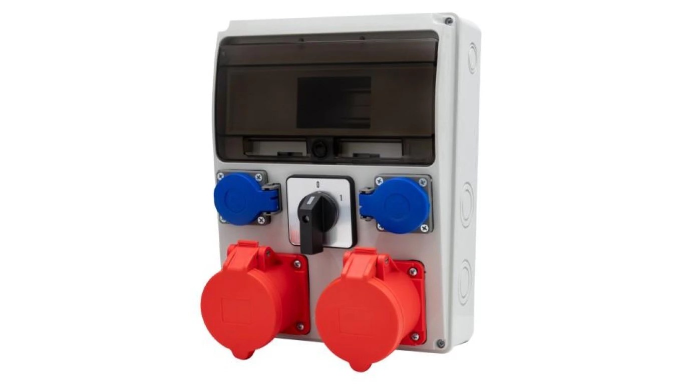 Rozdzielnica LAGO 11M - gniazda proste 2x16/5, 2x230V, 0/1(32A) o numerze katalogowym   F3.2606 w kategorii Osprzęt przemysłowy-siłowy>Zestawy zasilające. Produkt wyprodukowany przez markę F-ELEKTRO.