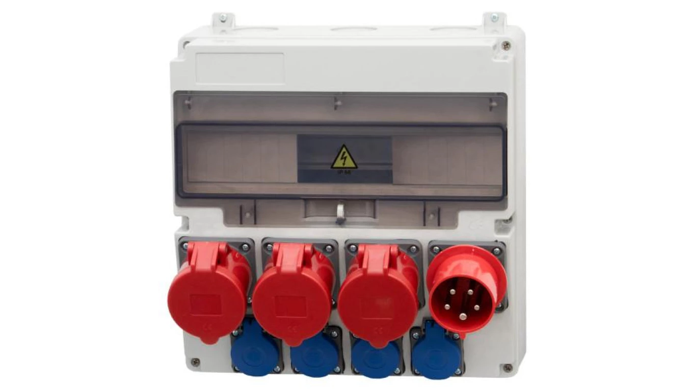 Rozdzielnica LAGO 17M - gniazda proste 16A 5p, 2x32A 5p 4x230V, wtyczka odbiornikowa 32A 5p /17 modułów/