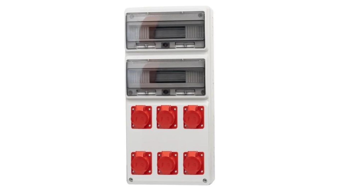 Rozdzielnica LEGATO 32M - gniazda 2x16A 5p, 4x32A 5p o numerze katalogowym   76100.119 w kategorii Osprzęt przemysłowy-siłowy>Zestawy zasilające. Produkt wyprodukowany przez markę F-ELEKTRO.