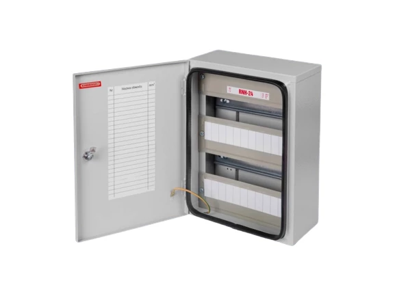 Rozdzielnica natynkowa RNH-24 z zamkiem, miejsce na 24 zabezpieczeń typu s. IP 54 o numerze katalogowym RNH-24 w kategorii Metalowe natynkowe, Rozdzielnice i obudowy. Produkt wyprodukowany przez markę KARWASZ, seria RNH.