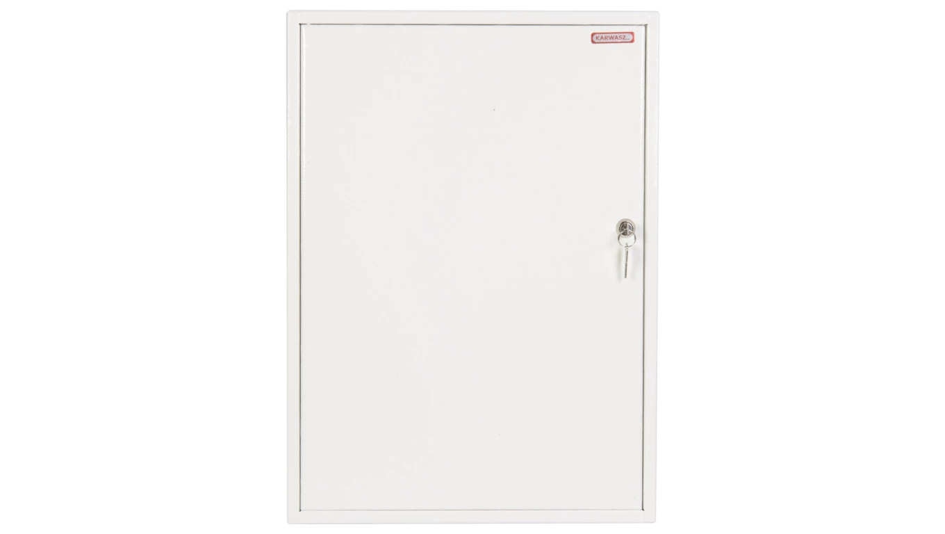 Rozdzielnica natynkowa RN-60-bis z zamkiem, głębokość 18,5 cm miejsce na 60 zabezpieczeń typu s. IP 30 o numerze katalogowym RN-60 BIS Z w kategorii Metalowe natynkowe, Rozdzielnice i obudowy. Produkt wyprodukowany przez markę KARWASZ, seria RN.