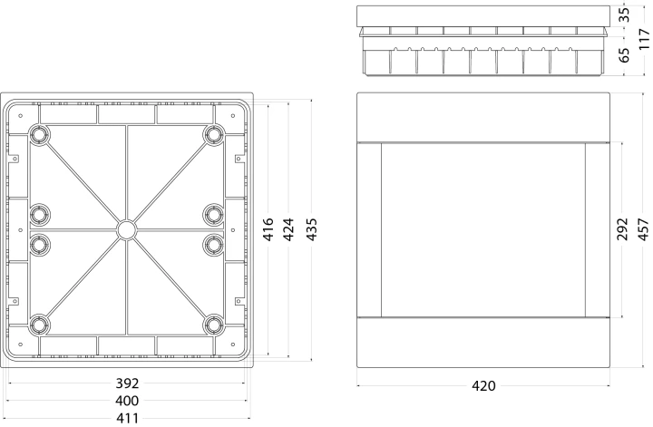 ROZDZIELNICA o wymiarach 0,12 x 0,42 x 0,45 m. Waga produktu wynosi 3,05 kg.