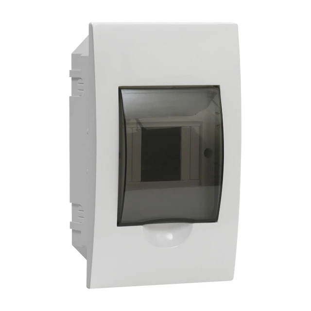 Rozdzielnica modułowa tworzywo 1x4 podtynkowa IP40 IK06 N+PE II klasa drzwi transparentne szare DB104F 1X4P/FMD biały 3840
