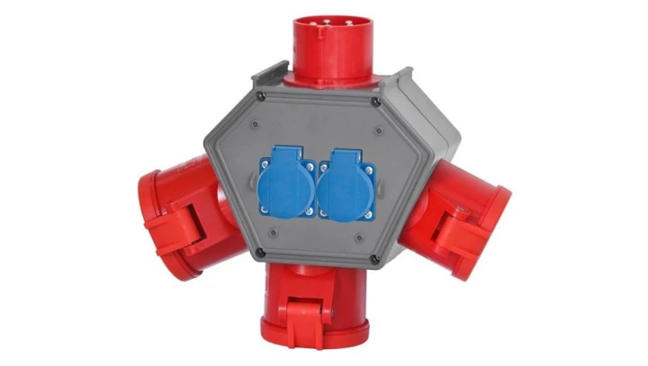 Rozdzielnica POLYBOX - wtyk odbornikowy 16A 5p, gniazda 16A 5p, 2x32A 5p, 2x230V