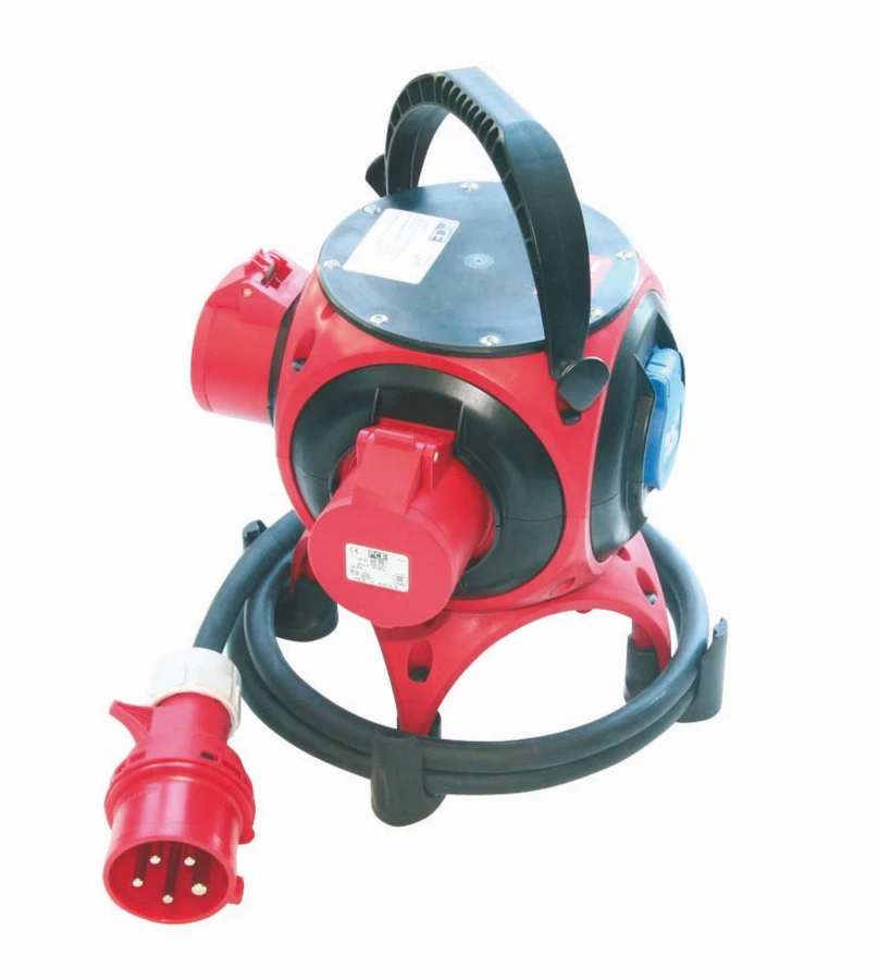 Rozdzielnica przenośna z tworzywa typ "Pegasus" IP44 6M wejście 2m przewodu H05RR-F 5x2,5 z wtyczką 16/5 wyjście 2x16/5 2xGS bez zabezpieczeń IP44 o numerze katalogowym 9034003R w kategorii Zestawy zasilające, Osprzęt przemysłowy-siłowy. Produkt wyprodukowany przez markę PCE, seria PEGASUS.
