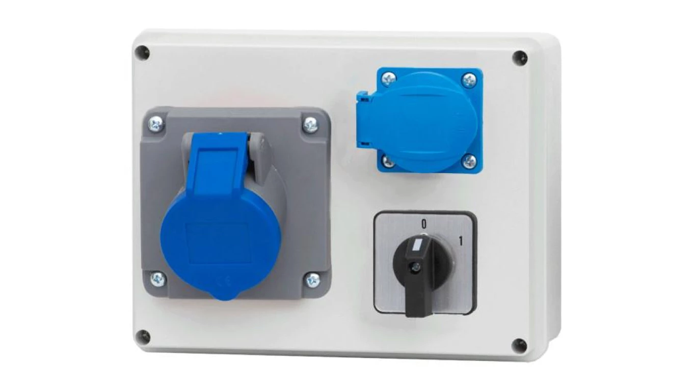 Rozdzielnica R-190 - gniazda 32A 3p, 230V, 0/1 (25A) o numerze katalogowym   F3.0781 w kategorii Osprzęt przemysłowy-siłowy>Zestawy zasilające. Produkt wyprodukowany przez markę F-ELEKTRO.