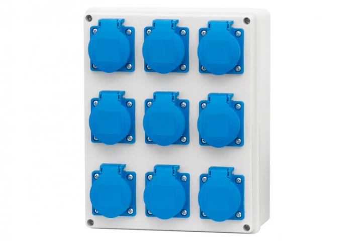 Rozdzielnica R-240 - gniazda 9x230V o numerze katalogowym   F3.0771 w kategorii Osprzęt przemysłowy-siłowy>Zestawy zasilające. Produkt wyprodukowany przez markę F-ELEKTRO.