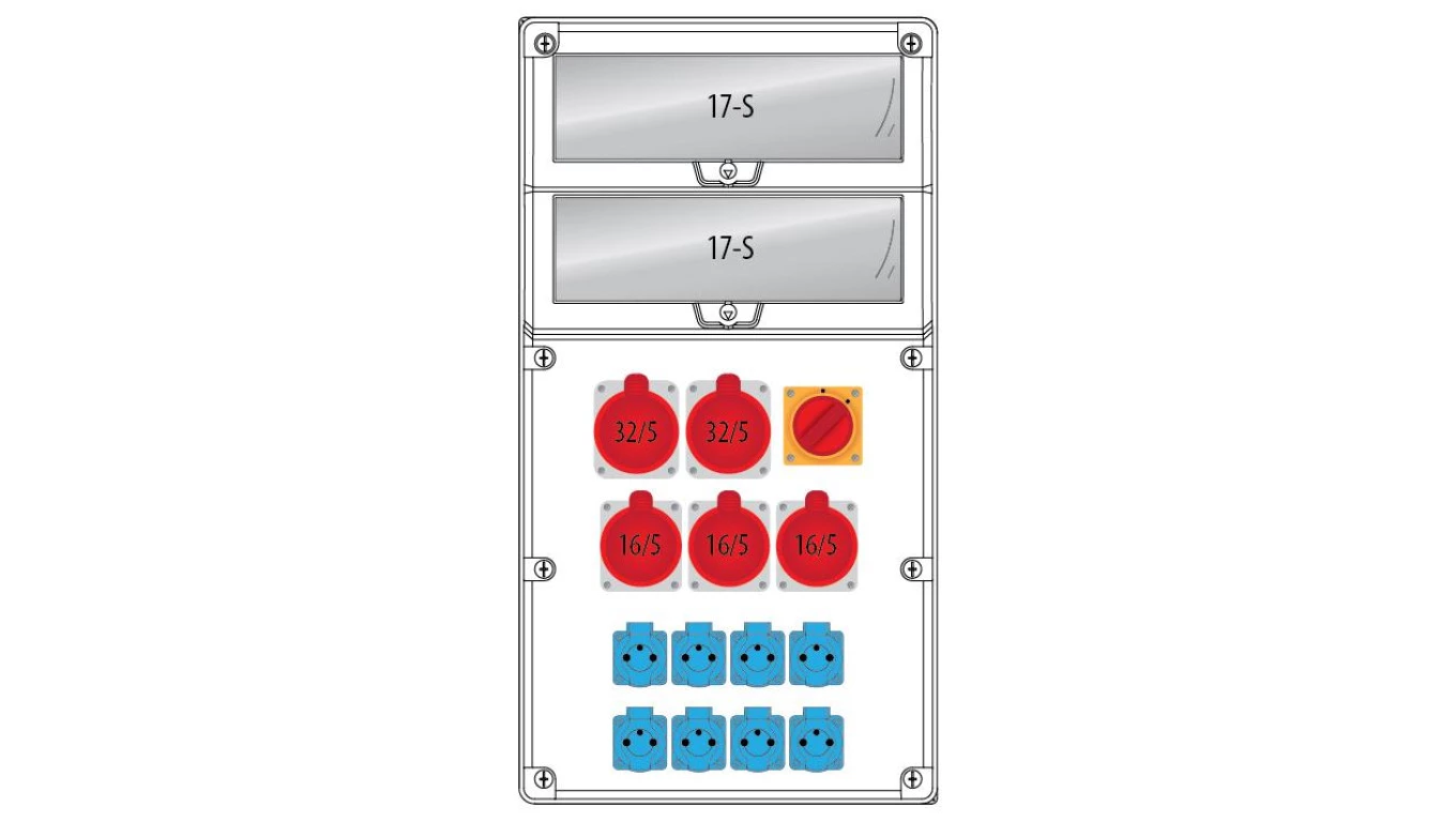 Rozdzielnica R-BOX 740 34S:2x32/5,3x16/5,8x250V,1x0/1,IP44 B.18.740-3W