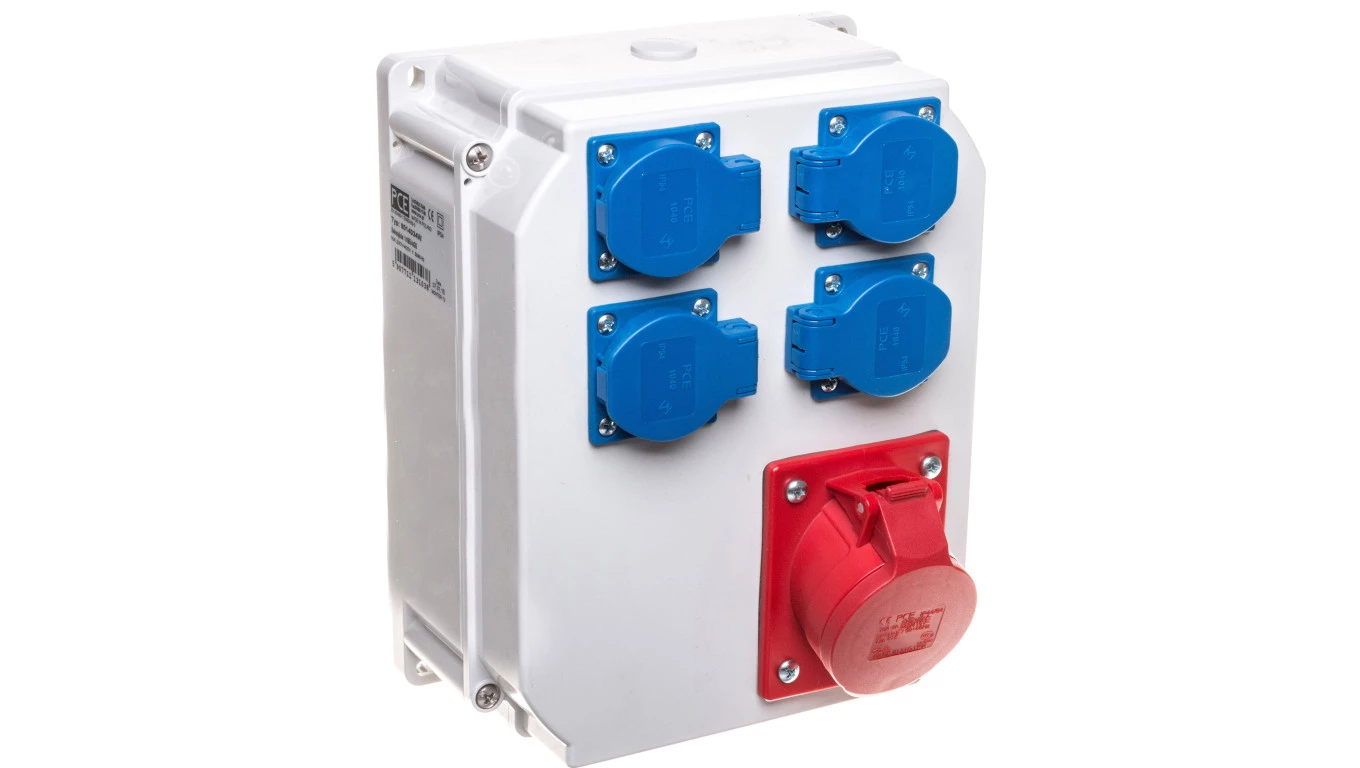 Rozdzielnica stacjonarna typ ŚWINOUJŚCIE wejście M20 wyjście 16/5 4xGS IP44 o numerze katalogowym 9014034W w kategorii Zestawy zasilające, Osprzęt przemysłowy-siłowy. Produkt wyprodukowany przez markę PCE, seria ŚWINOUJŚCIE.