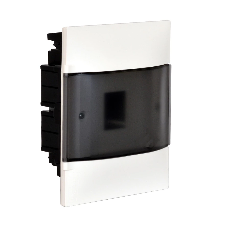 Rozdzielnica podtynkowa PRACTIBOX S 1x4 drzwi przezroczyste, do ścian pełnych o numerze katalogowym 134154 w kategorii Tworzywowe podtynkowe, Rozdzielnice i obudowy. Produkt wyprodukowany przez markę LEGRAND, seria PRACS.