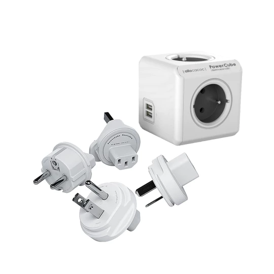 ROZGAŁĘŹNIK 4X Z/U + WTYCZKI US/ UK/ EU/ AU + 2X USB-A GNIAZDO E/(FR) SZARY POWERCUBE