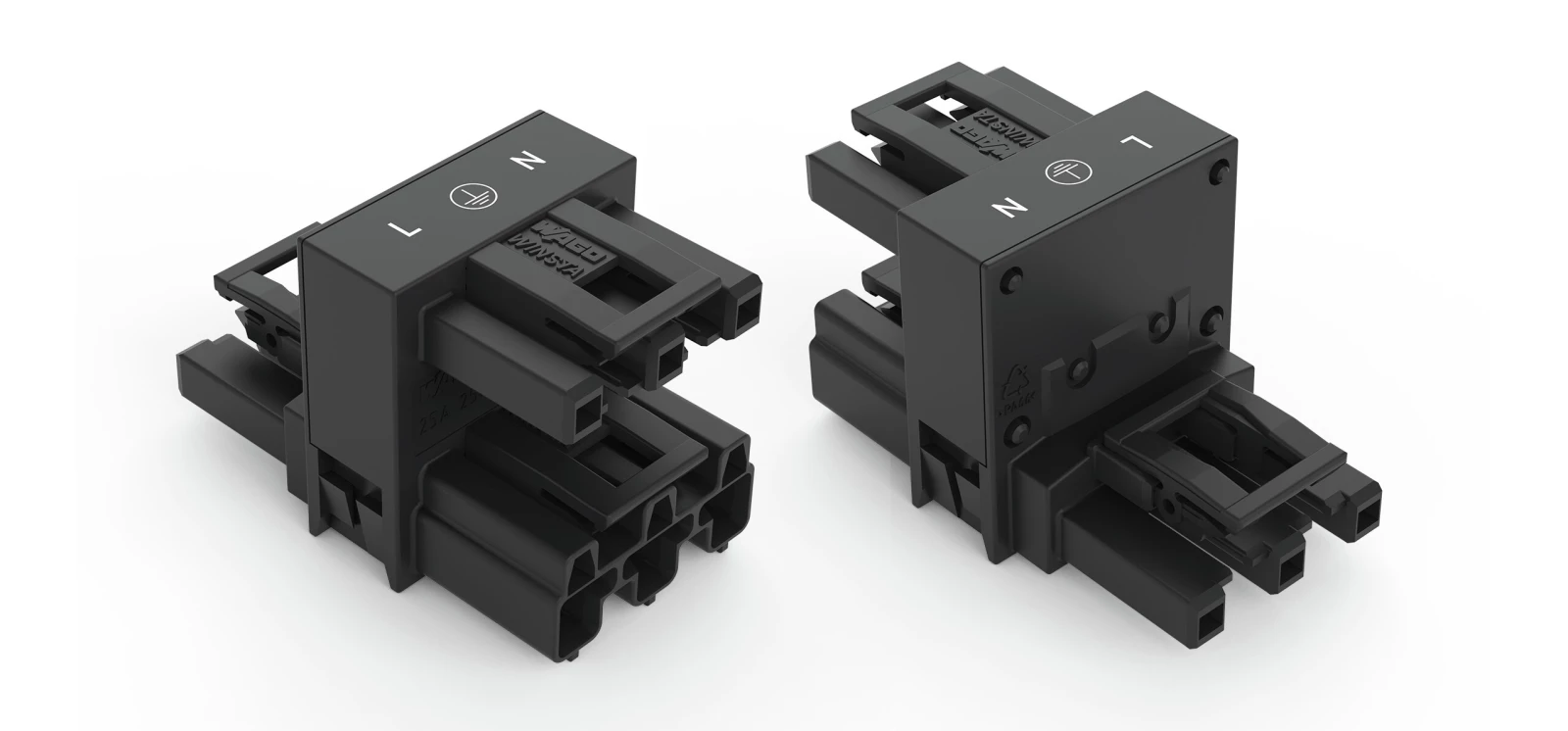 Gniazdo 3-torowe 250V 25A czarne z mocowaniem zatrzaskowym 770-703 WINSTA /100szt./