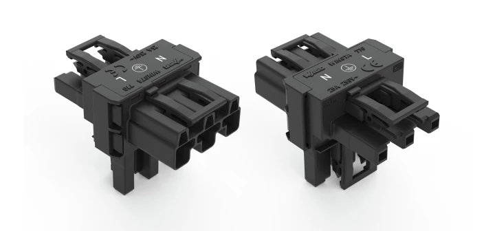 Rozgałęźnik typu T 3-torowy 1x wtyk / 1x gniazdo czarny WINSTA 770-615 /50szt./