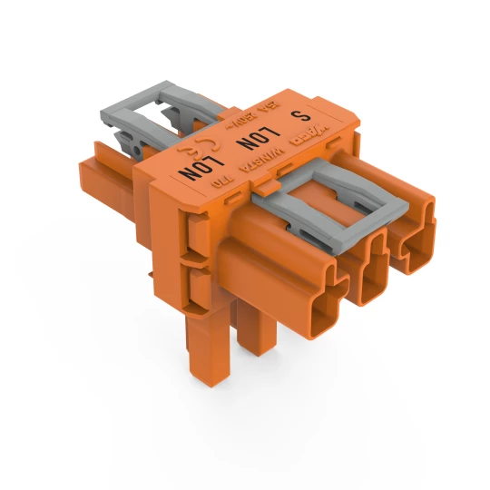 Rozgałęźnik typu T 3-torowy 1x wtyk / 2x gniazdo pomarańczowy WINSTA 770-667 /50szt./