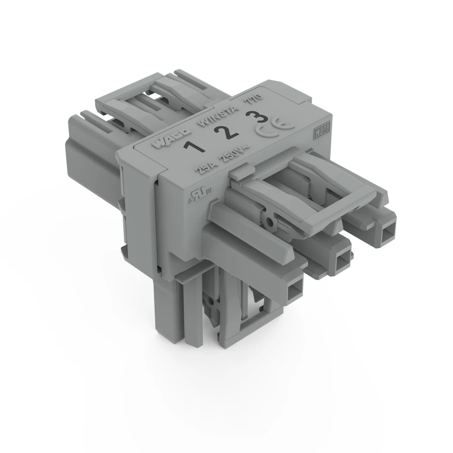 Rozgałęźnik typu T 3-torowy 1x wtyk / 2x gniazdo szary WINSTA 770-970 /50szt./