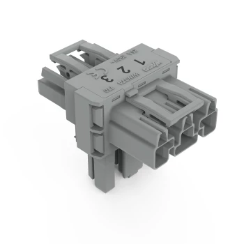rozgałęźnik typu T; 3-bieg.; kodowanie B; 1 wejście; 2 wyjścia; 3 zaczepy ryglujące; do połączeń swobodnych; szary