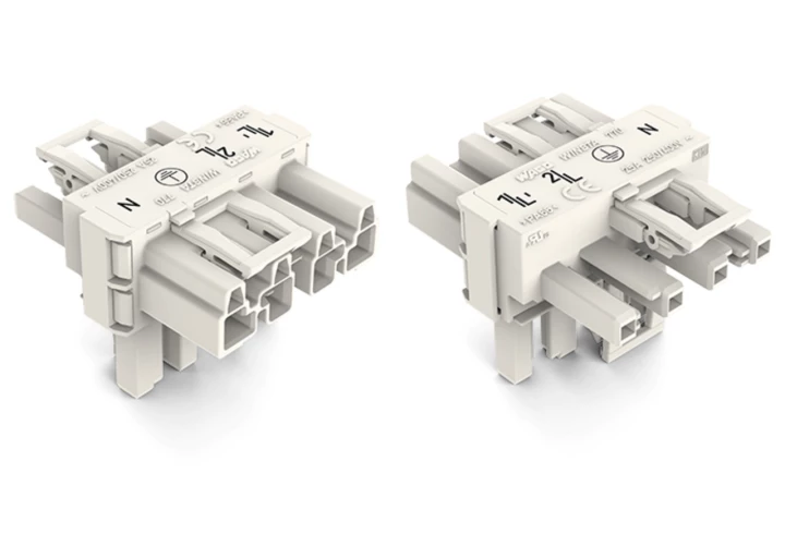 Rozgałęźnik typu T 4-torowy 1x wtyk / 2x gniazdo biały WINSTA 770-677 /50szt./
