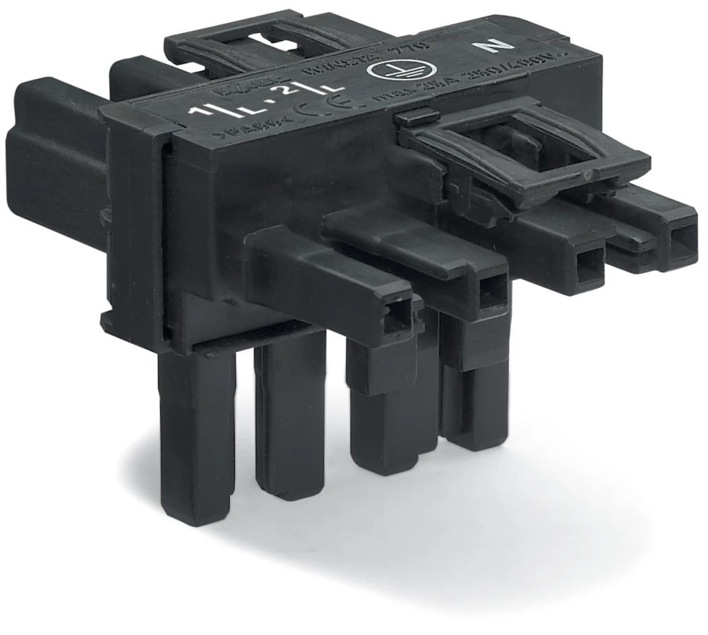 Rozgałęźnik typu T 4-torowy 1x wtyk / 2x gniazdo czarny WINSTA 770-626 /50szt./