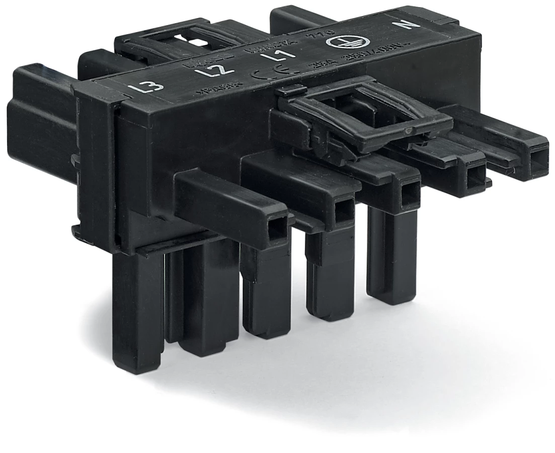 Rozgałęźnik typu T 5-torowy 1x wtyk / 2x gniazdo czarny WINSTA 770-621 /50szt./