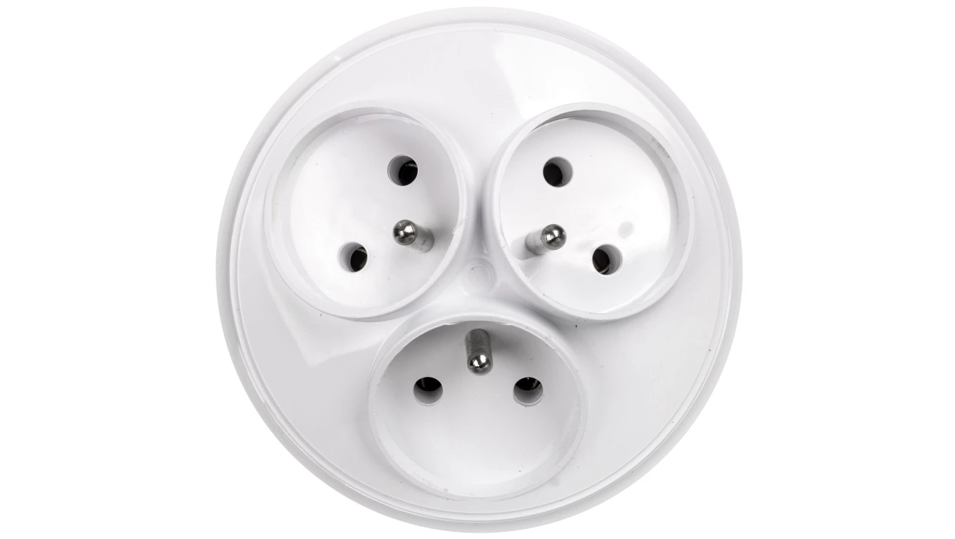 Rozgałeźnik wtyczkowy 3x2P+Z okrągły biały R-36