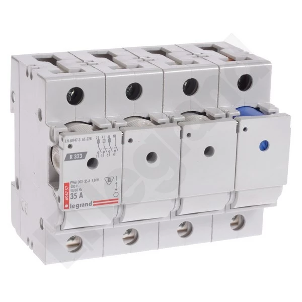 Rozłącznik izolacyjny, bezpiecznikowy, trójbiegunowy z rozłączalnym biegunem neutralnym, R 323 35A o numerze katalogowym 606757 w kategorii Rozłączniki bezpiecznikowe D, Rozłączniki bezpiecznikowe. Produkt wyprodukowany przez markę LEGRAND, seria R300.