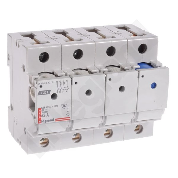 Rozłącznik izolacyjny, bezpiecznikowy, trójbiegunowy z rozłączalnym biegunem neutralnym, R 323 63A o numerze katalogowym 606759 w kategorii Rozłączniki bezpiecznikowe D, Rozłączniki bezpiecznikowe. Produkt wyprodukowany przez markę LEGRAND, seria R300.
