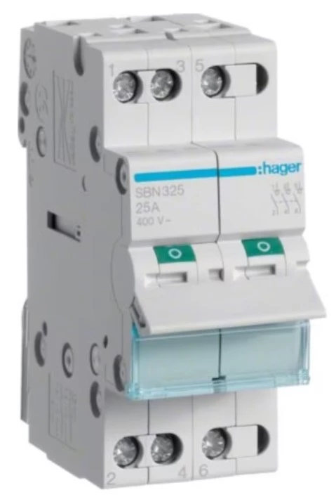 Modułowy rozłącznik izolacyjny 3P 25A 400VAC o numerze katalogowym SBN325 w kategorii Wyłączniki i rozłączniki modułowe, Wyłączniki, rozłączniki. Produkt wyprodukowany przez markę HAGER.