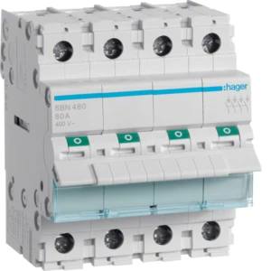 Rozłącznik izolacyjny modułowy 4P 80A 400VAC o numerze katalogowym SBN480 w kategorii Pozostałe, Niesklasyfikowane..