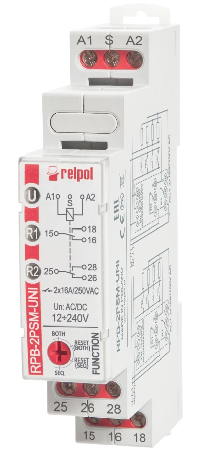 Przekaźnik bistabilny-impulsowy z pamiecią RPB-2PSM-UNI, zestyki 2x1P, 12...240 V AC/DC, 16 A /250 V AC, sekwencyjny o numerze katalogowym   864392 w kategorii Przekaźniki>Przekaźniki impulsowe. Produkt wyprodukowany przez markę RELPOL, seria RPB.