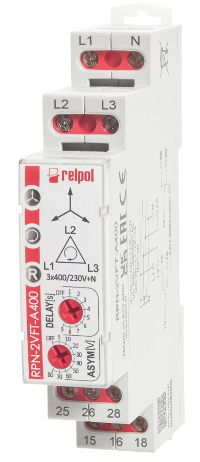RPN-2VFT-A400 PRZEKAŹNIK DO NADZORU NAPIĘCIA AC W SIECI 3-FAZOWEJ 3 (N) - 400/230 V. NAPIECIE ZASIL