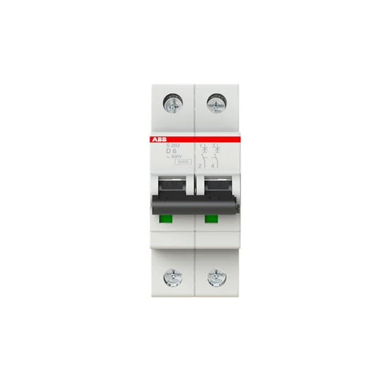 Wyłącznik nadmiarowo-prądowy, 2P, charakterystyka D, 6A, 6kA, AC | S202-D6 o numerze katalogowym   2CDS252001R0061 w kategorii Wyłączniki nadprądowe>Wyłączniki nadprądowe 6kA. Produkt wyprodukowany przez markę ABB, seria S200.