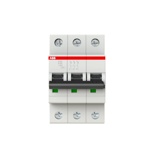 Wyłącznik nadmiarowo-prądowy, 3P, charakterystyka D, 25A, 6kA, AC | S203-D25 o numerze katalogowym   2CDS253001R0251 w kategorii Wyłączniki nadprądowe>Wyłączniki nadprądowe 6kA. Produkt wyprodukowany przez markę ABB, seria S200.