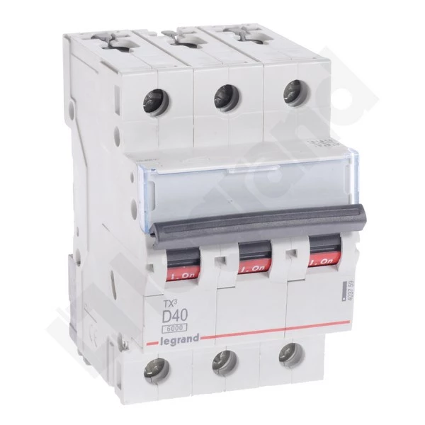 Wyłącznik nadprądowy S 303 3P D 40A 6000A TX3 o numerze katalogowym 403759 w kategorii Wyłączniki nadprądowe 6kA, Wyłączniki nadprądowe. Produkt wyprodukowany przez markę LEGRAND, seria S30TX.