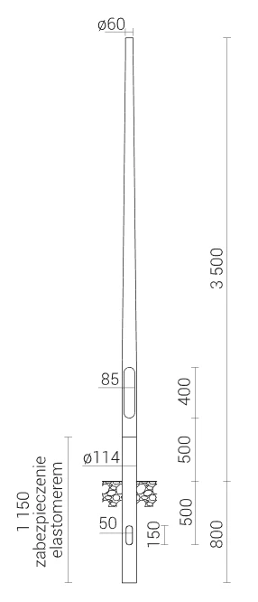 SAL-3.5 B/60 SŁUP ALUMINIOWY ALUMINIUM ANODOWANY NATURALNY (FUND.B-50/Z-50)