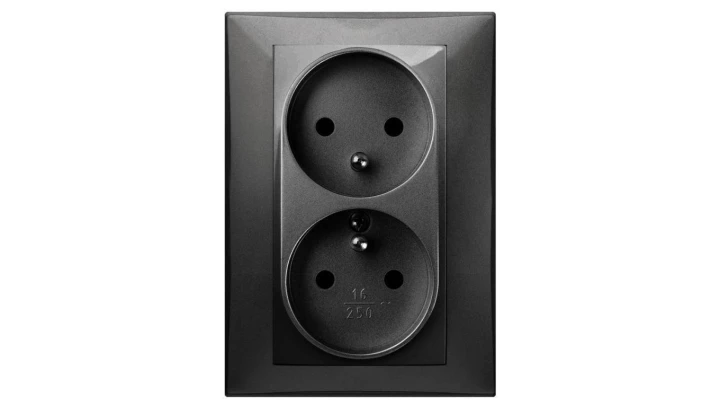 Simon 54 Gniazdo pojedyncze SCHUKO z/u 16A IP20 z przesłoną torów, szybkozłącza, antracyt DGSz1CZ.01/48