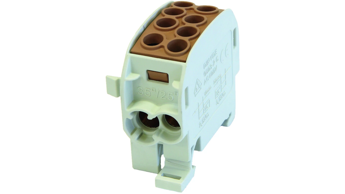 SCB 35 BRĄZOWYSCB 35 BLOK ROZDZIELCZY - ODGAŁĘŹNY AL/CU 80210 SIMBLOCK BRĄZOWY|PRĄD ZNAMIONOWY:202A/