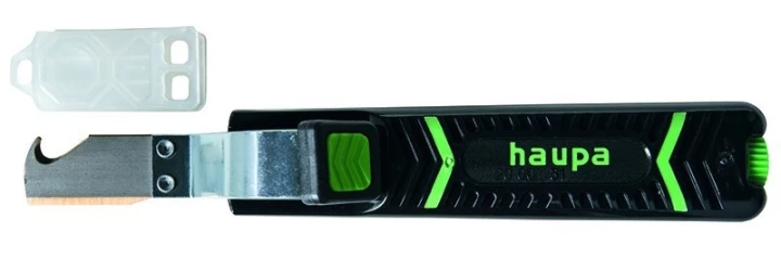 Ściagacz izolacji z ostrzem hakowym 8 - 28 mm o numerze katalogowym 200031 w kategorii Z ostrzami stałymi, Noże do ściągania izolacji. Produkt wyprodukowany przez markę HAUPA.