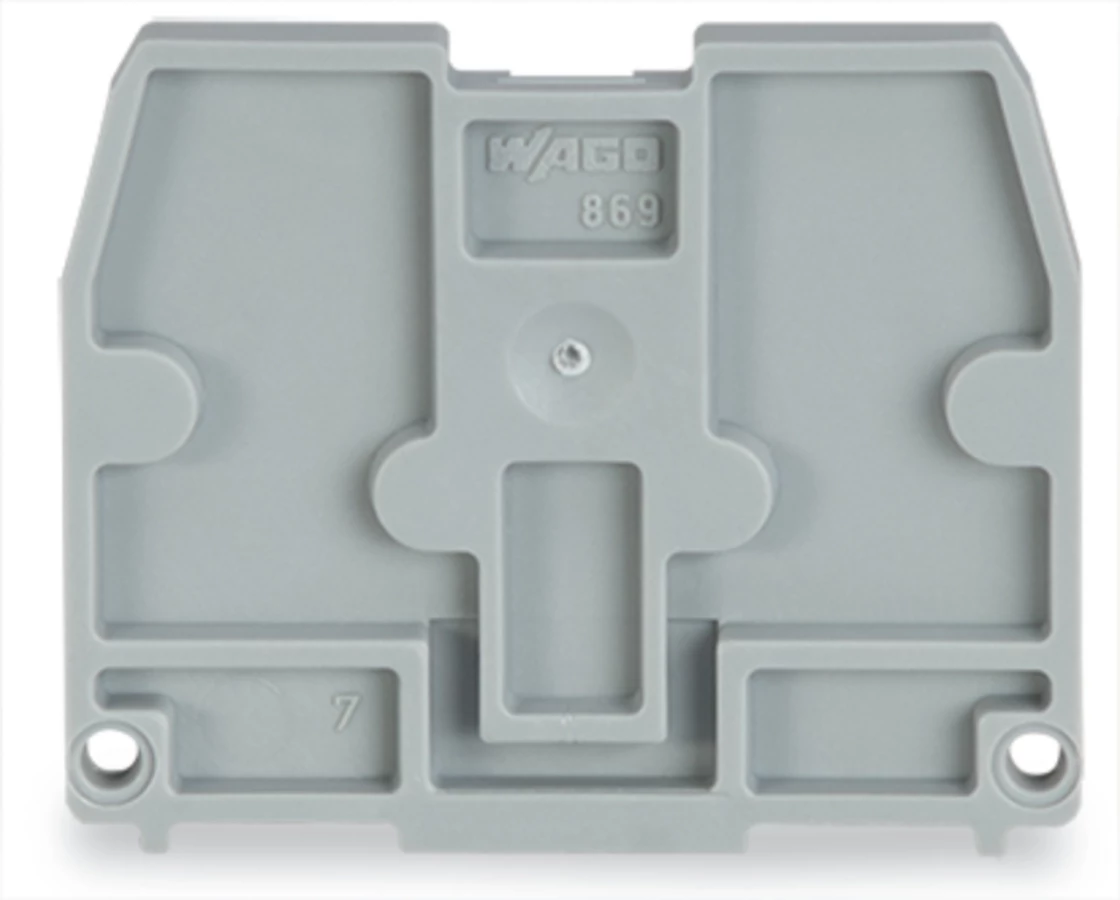 ścianka końcowa; do złączek ze stopką zatrzaskową; grubość 2,5 mm; szary