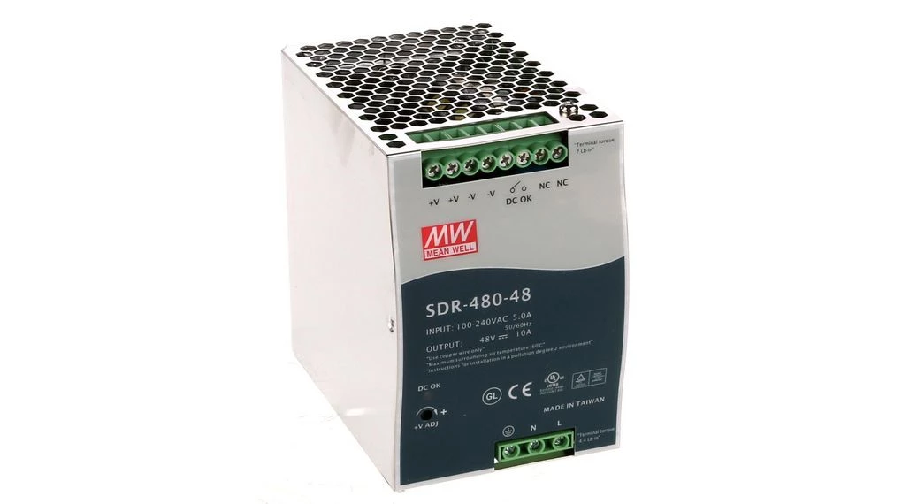 Zasilacz na szynę DIN 480W 48V 10A o numerze katalogowym SDR-480-48 w kategorii Zasilacze na szynę DIN, Zasilacze. Produkt wyprodukowany przez markę MEAN WELL, seria SDR.