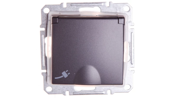 Simon 54 Gniazdo bryzgoszczelne z/u IP44 z klapką transparentną antracyt DGZ1BZ.01/48A