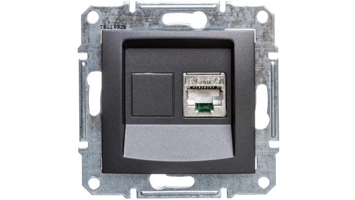 Simon 54 Gniazdo komputerowe pojedyncze RJ45 kat.6 ekranowane z przesłoną antracyt D61E.01/48