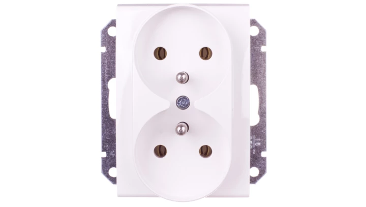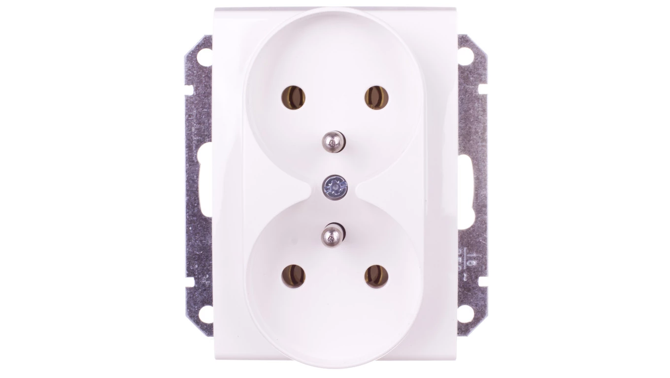 Simon 54 Gniazdo podwójne z/u 16A IP20 z przesłoną torów kremowe DGZ2MZ.01/41