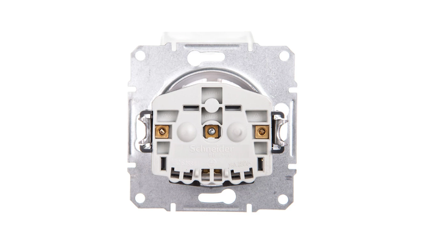 Simon 54 Gniazdo pojedyncze SCHUKO z/u 16A IP20 z przesłoną torów, szybkozłącza, białe DGSz1CZ.01/11
